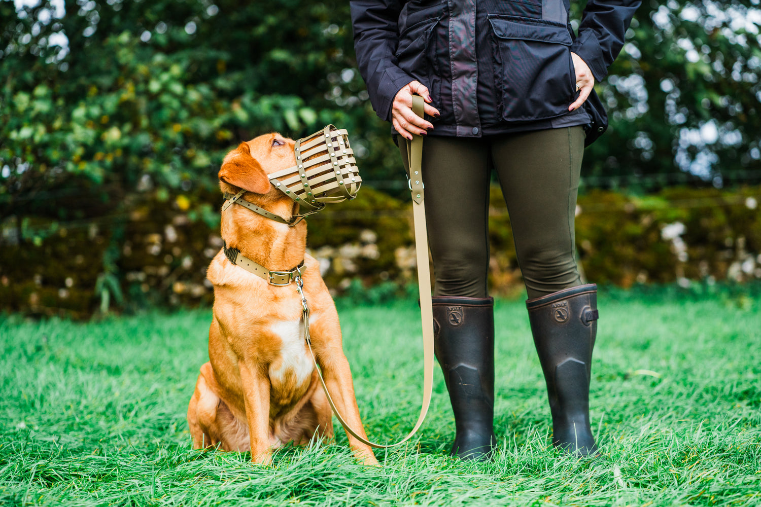 • Collar strap — controls how firmly the muzzle stays behind the ears.