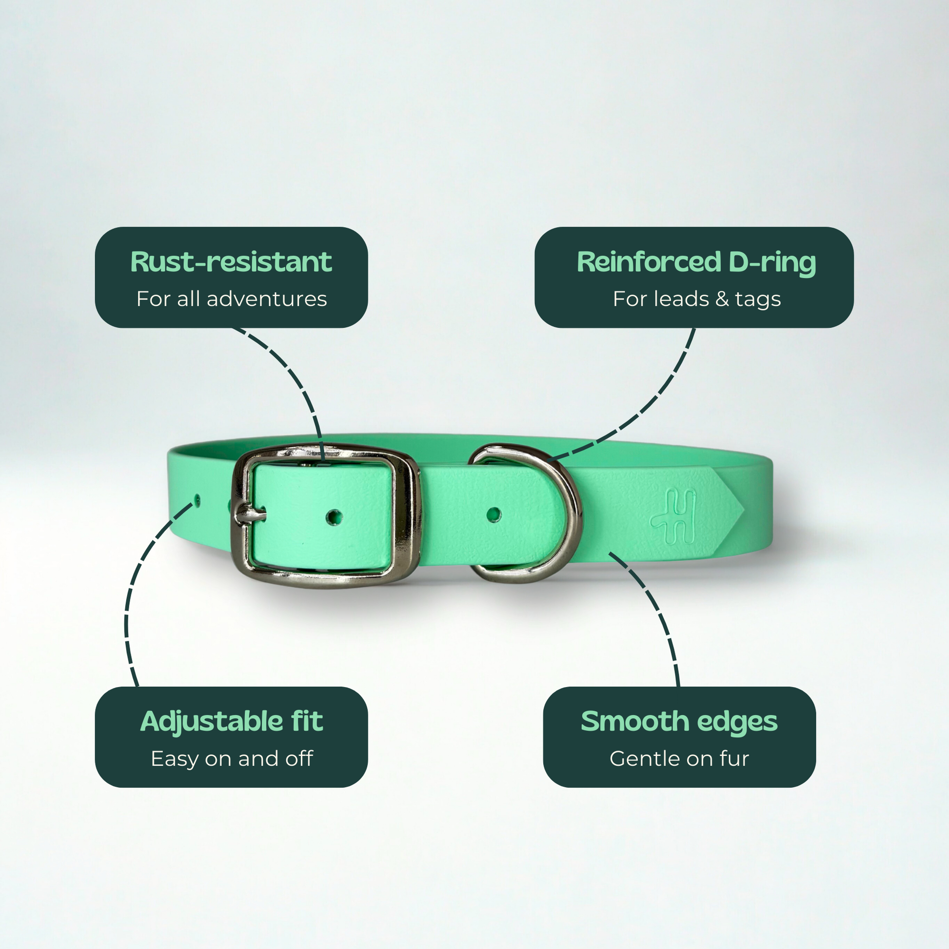 Our Classic Collar is strong, stylish, and made for everyday adventures. Handmade from genuine Biothane®, it’s completely waterproof, easy to wipe clean, and soft to the touch — giving you the look and feel of leather with the durability to handle muddy walks, rainy days, and everything in between.