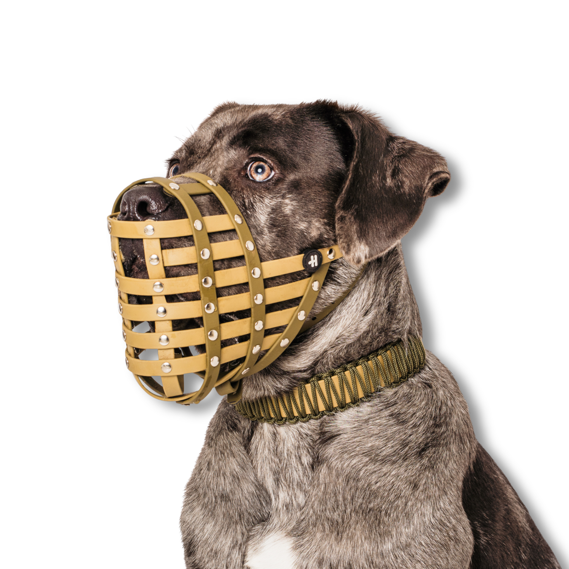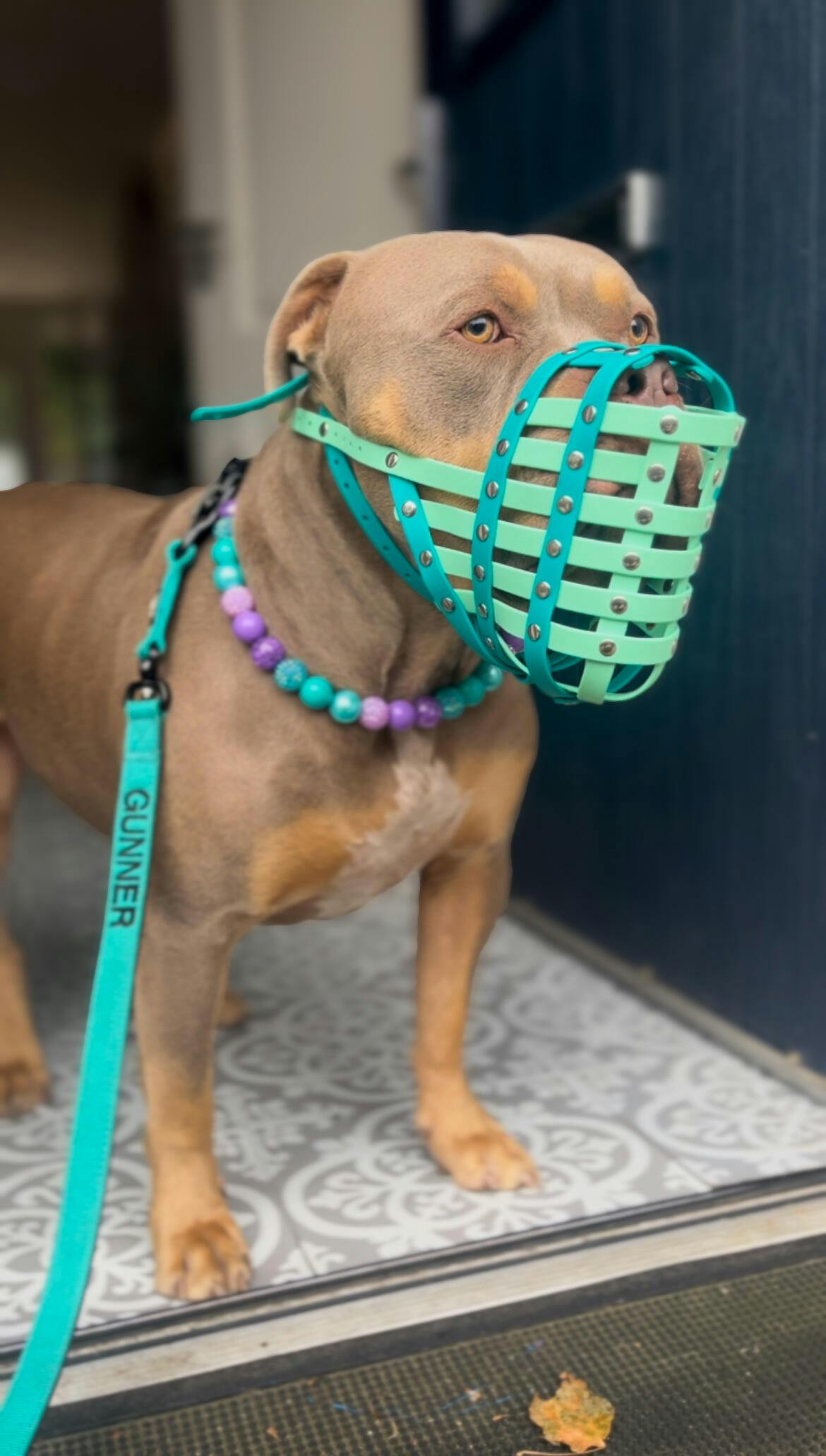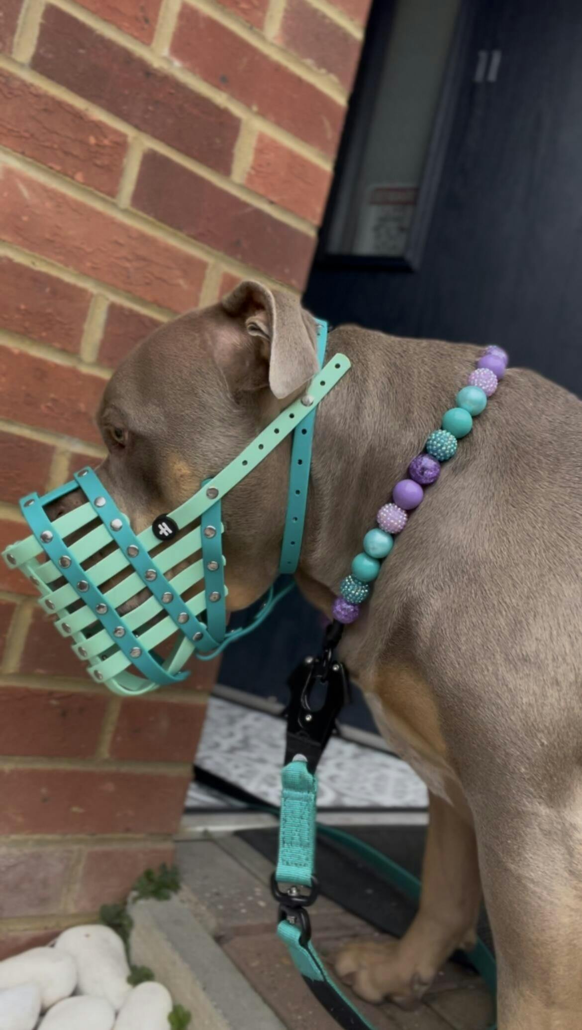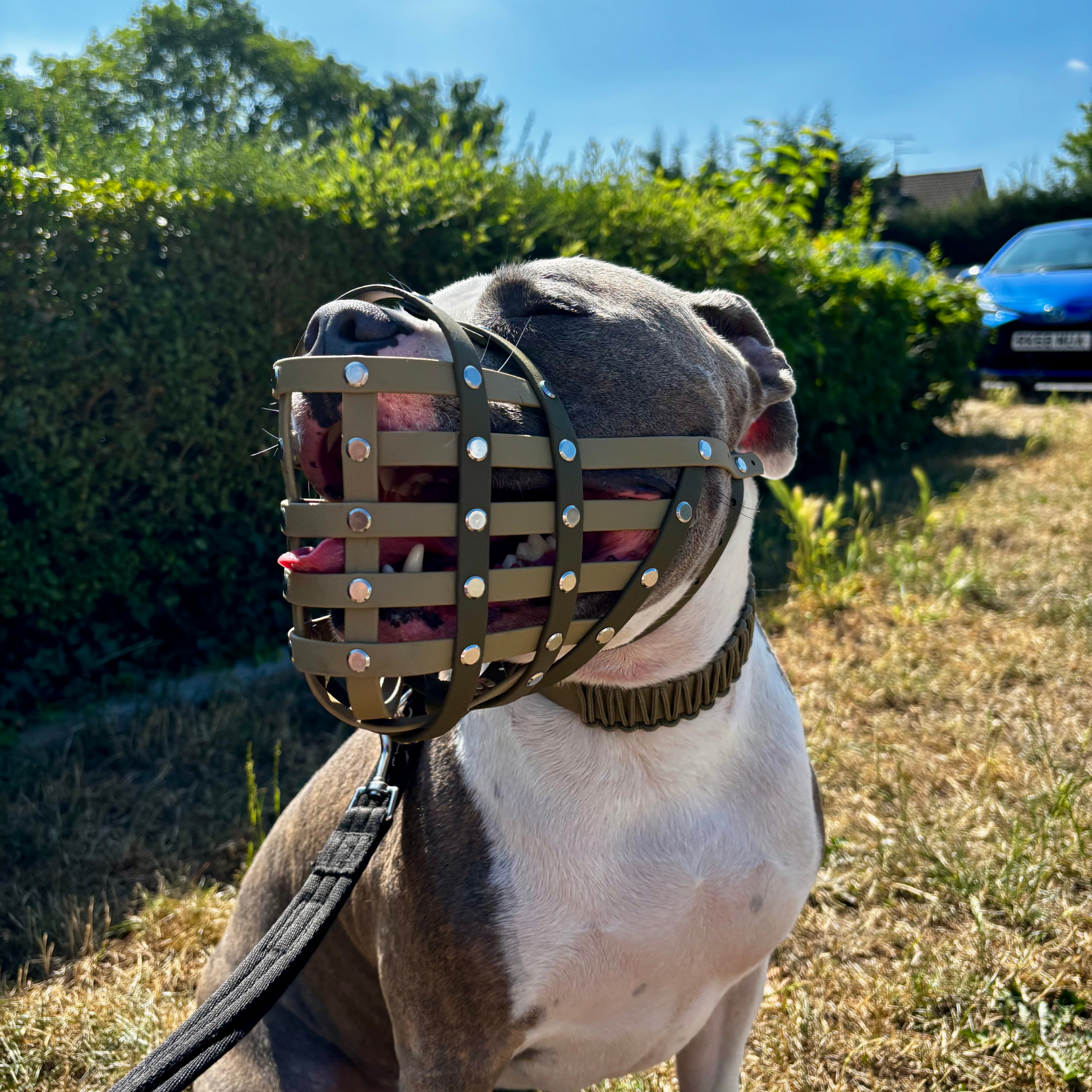 We don’t believe in breed-specific muzzles, but as a rough guide, Size Paw is often chosen for smaller XL Bullys, larger Staffordshire Bull Terrier crosses, and other medium-large breeds.